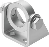 View our selection of pneumatic cylinder ISO 6432 cap-end mounting accessories. We have fixed mounting options available as either a flange or foot mounted. Flange mounted secures the cylinder to a mounting surface perpendicular to the length of the cylinder and a foot mount allows the mounting surface to run parallel to the cylinder's rod. They are secured to the cap-end side of the cylinder by sliding the flange over the cylinder's housing and using a nut to secure it to place. The foot mount then has a 90 degree bend in it. If you have any questions, contact us.