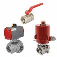 Figure 2: A manual ball valve (left), electric ball valve (center), and pneumatic ball valve (right).
