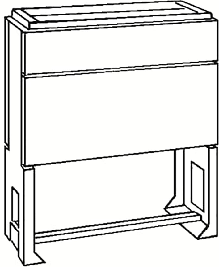 The product is an ABB base for cabinet/desk, known as EH3 POLYESTERSOKKEL DIN 00. The unit is pre-assembled and ready for usage. The material used in the construction of this item is polyester, ensuring durability and sturdy performance. The product's design complies with the DIN 00 standards, offering peace of mind in its safety and quality. It can be conveniently used for setting up or heightening cabinets and desks.