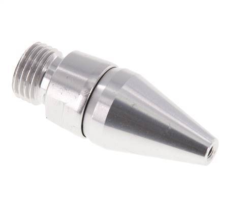 This is an adjustable flow air saving nozzle made of aluminum, with an Rp 1/4“ male threaded air inlet port. While blowing the inlet air out, the nozzle draws the surrounding air in as well, making the output almost 25 times larger than the input. The circular output slot can be adjusted from 0 to 0.25 mm.