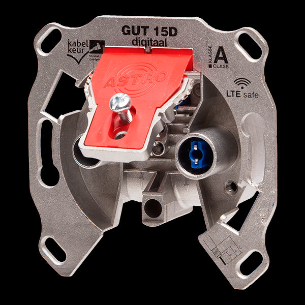 Astro Inhome antenna terminal box, number/type of outputs 2 connection. Radio/TV, flush mount standard, frequency 5 - 1218MHz, suitable for cable modem, connection for 2x IEC male/female, connection attenuation at 860 MHz 0.6dB, connection coax core screw, 2 outputs, throughput attenuation at 860 MHz 0.6dB.