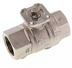 2-Way ball valve with G1 inch thread (F/F) with ISO-Top (5211 F03), suitable for drive with an electric or pneumatic actuator. Nickel plated brass body with hard chromed ball and PTFE/FKM seals (silicone free). 25 mm nominal diameter and max working pressure 40 bar. For water, oil, air, gas or vacuum. Temperature range from -20 to 160°C. Complies with EN 331 and may be used for natural gas or liquid gas (max 5 bar and 60°C).