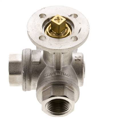 The valve has a flange according to the ISO 5211 F03 norm. This makes the valve suitable for electrical or pneumatic actuation. The valve is not equipped with a handle for manual control.