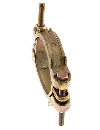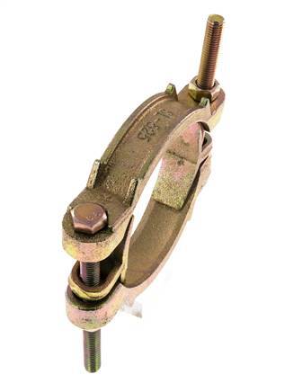 Hose clamp for compressor claw couplings (DIN 20039A). Made from malleable cast iron. Suitable for a hose diameter between 113-127 mm. The hose clamp exist out of two parts that are clamped around the hose with two bolts. These hose clamps are designed to use together with compressor claw couplings.