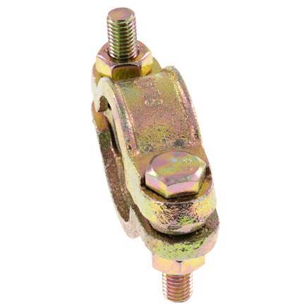 Hose clamp for compressor claw couplings (DIN 20039A). Made from malleable cast iron. Suitable for a hose diameter between 39-49 mm. The hose clamp exist out of two parts that are clamped around the hose with two bolts. These hose clamps are designed to use together with compressor claw couplings.