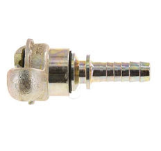 This cast iron DIN 3489 (similar) compressor claw coupling (42mm distance between claws) has a 25 mm (1 inch) hose pillar connection. It has a 24 mm diameter safety collar. It has a rotary joint. It has a DN of 10 mm. Each coupling has two claws at 180 degrees. It is suitable up to 16 bar within a temperature range of -40 to 95 °C. Great for demanding applications with higher flow rates.