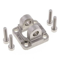 This steel female cap-end clevis mounting accessory can be mounted on ISO 15552 & ISO 21287 cylinders with 32 mm diameter using the 4 bolts (included). Use a 10 pin for the connection (available separately). Can be used to mount directly onto the cylinder or as counter hinge.