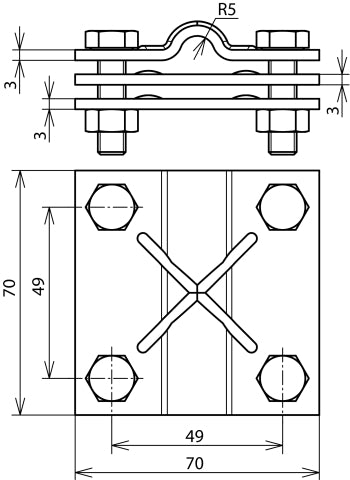 The item is a cross unit designed for lightning protection, compliant with EN 62561-1 standards. Its use includes both aboveground and underground connections of round and flat conductors. The round conductor's diameter ranges from 8-10mm and the flat conductor's width is up to 40mm. It features an intermediate plate and M8 hexagonal screws for secure fixture. The cross unit is made of steel and offers thermal galvanization for efficient surface protection. It uses a cross coupling type of connection for a reliable, robust connection.