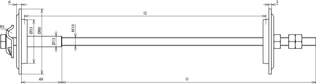 This product is a water-pressure-tight wall bushing, accompanied by a medium voltage clamp made of stainless steel (V4A). It is designed for leading earthing conductors or equipotential bonding conductors through walls and brickwork. Included is an M10 threaded rod also made of stainless steel. Installation can be done post-production through a borehole of 14 mm diameter, or alternatively, through a formwork spacer if necessary. It can withstand a pressurised water test up to 1 bar, which equates to an installation depth of 10m in stagnant water.