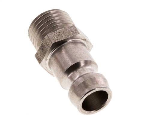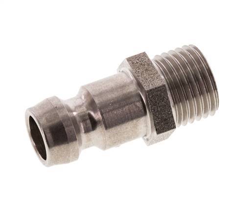 Stainless steel DN 6 mold coupling plug with M10x1 male threads. They are typically used for liquid lines to quickly connect and disconnect secure connections.