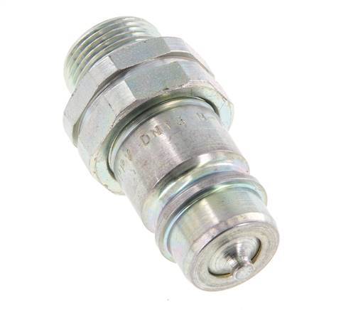 Steel DN 12.5 hydraulic coupling plug with 15 mm L (light) compression ring. The maximum operating pressure is 250 bar (3625 psi). The coupling is suitable for temperatures between -20 to 100 °C (-4 to 212 °F). The coupling adheres the ISO 7241-1 A and DIN EN ISO 8434-1 (DIN 2353).