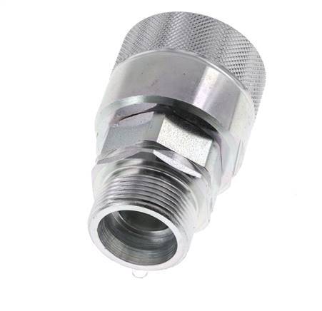 Steel DN 25 hydraulic coupling plug with 25 mm S (heavy) compression ring. The maximum operating pressure is 300 bar (4350 psi). The coupling is suitable for temperatures between -20 to 100 °C (-4 to 212 °F). The coupling adheres the DIN EN ISO 8434-1 (DIN 2353).