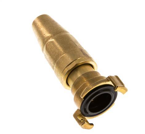 This is a garden hose connector with a 7 mm nozzle. It has a 40 mm distance between the claws. It is made of brass with an NBR (nitrile rubber) seal. The maximum operating pressure is 25 bar (363 psi). The coupling is suitable for temperatures between 0 to 80 °C (32 to 176 °F). This nozzle garden hose connector is designed to connect to another garden hose connector that has a hose attached to it.
