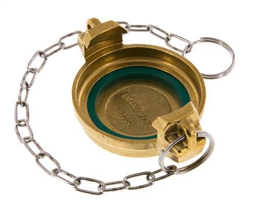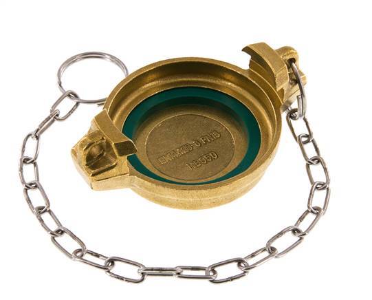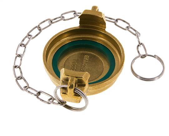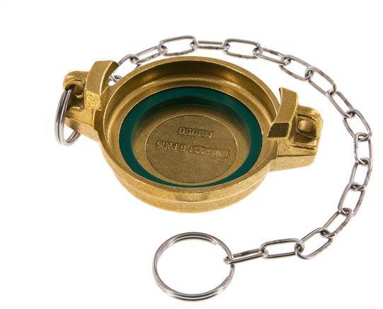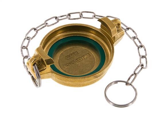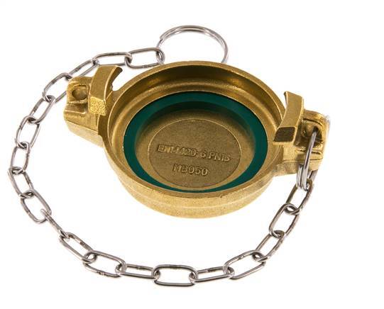 This is a DN 50 tank truck cap (MB type). The MB cap is used with VK-type couplings. It is made of brass with a CSM (Hypalon) seal. The maximum pressure is 16 bar (232 psi). The coupling is suitable for temperatures between -20 to 80 °C (-4 to 176 °F).