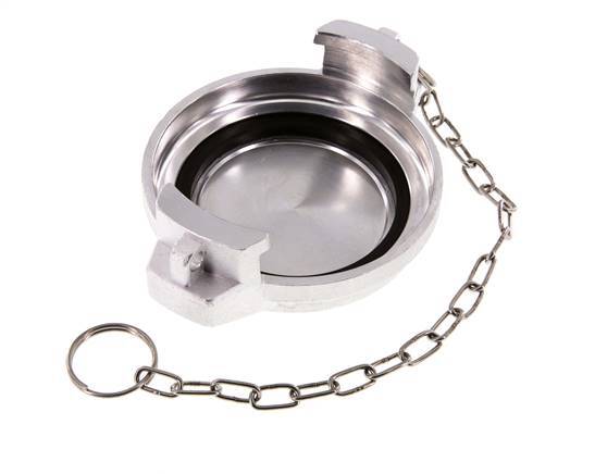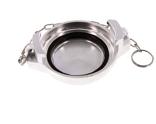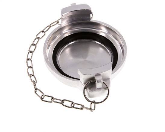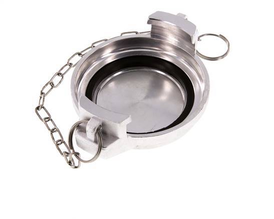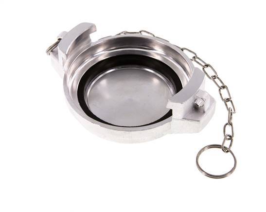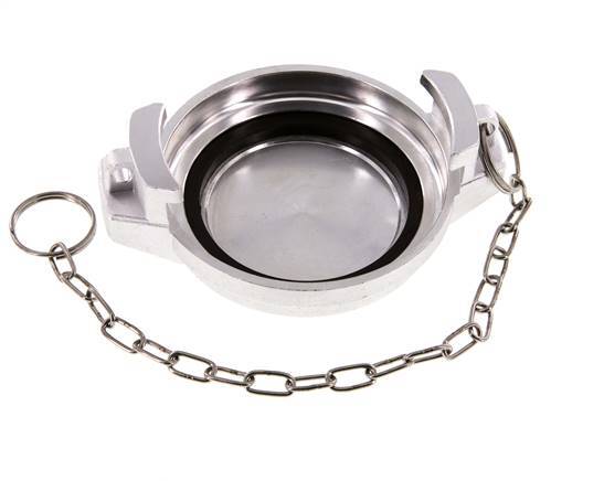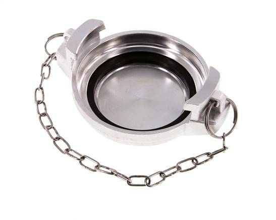 This is a DN 80 tank truck cap (MB type). The MB cap is used with VK-type couplings. It is made of aluminium with an NBR (nitrile rubber) seal. The maximum pressure is 16 bar (232 psi). The coupling is suitable for temperatures between -20 to 80 °C (-4 to 176 °F).
