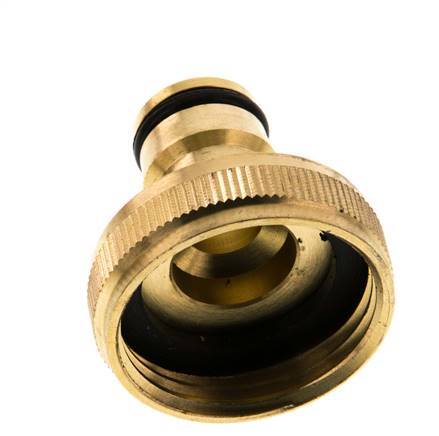 Brass garden hose fitting with G1" female thread, suited for GARDENA fittings. Temperature range from 0 to 60°C and pressure range from 0 to 8bar.