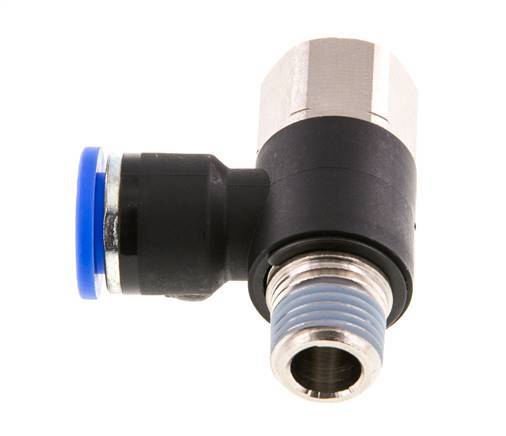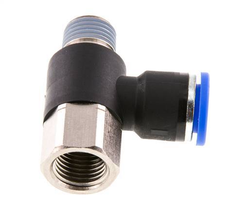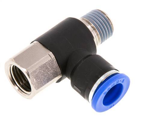 10mm x R1/4'' Elbow Push-in Fitting with Male-Female Threads Brass/PA 66 NBR Rotatable
