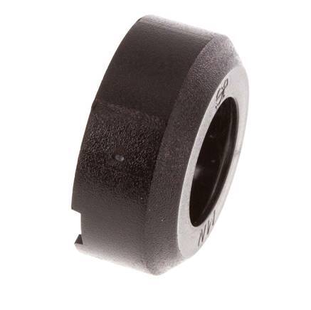This is a safety cap for a push-in fitting. The body is made of POM. The connection port is made of POM. The operating pressure range is -0.95 to 10 bar (-14 to 145 psi), making it suitable for vacuums. The fitting is suitable for temperatures from -20 to 70 °C (-4 to 158 °F).