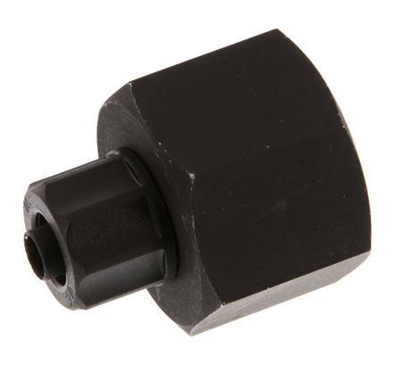 This aluminum straight push-on fitting is designed with one push-on connection and with one female threaded connection. Connection 1 is a 8x6 mm push-