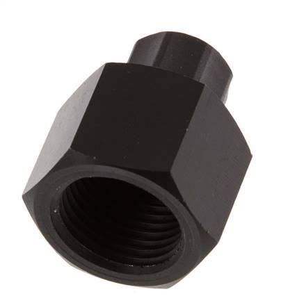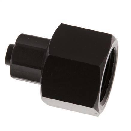 This aluminum straight push-on fitting is designed with one push-on connection and with one female threaded connection. Connection 1 is a 10x8 mm push