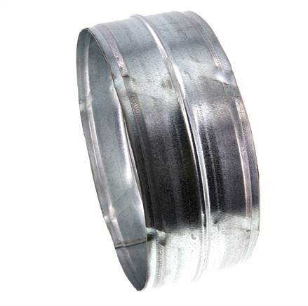 This zink plated steel hose connector is designed with two hose pillars. Connection 1 is hose pillar, designed for a hose with an inner diameter of 200 mm (8 inch). Connection 2 is hose pillar, designed for a hose with an inner diameter of 200 mm (8 inch). The maximum pressure is 2 bar (29 psi).