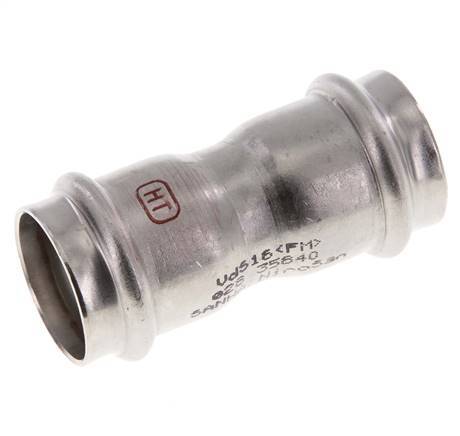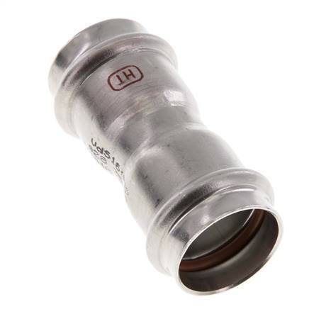 This is a straight press fitting made from stainless steel 1.4404. The fitting has two female press ports. Connection 1 and 2 are designed for a tube with an outer diameter of 28 mm. The fitting has an FKM sealing ring. The maximum pressure is 25 bar (363 psi). The fitting is suitable for temperatures from -20 to 200 °C (-4 to 392 °F). Temporary, the max temperature can be +280 °C (536 °F). The fitting length is 78 mm.