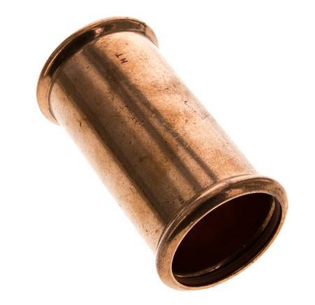 This is a press fitting with long sleeve made from copper alloy. The fitting has two female press ports. Connection 1 and 2 are designed for a tube with an outer diameter of 54 mm. The fitting has an FKM sealing ring. The maximum pressure is 16 bar (232 psi). The fitting is suitable for temperatures from -20 to 200 °C (-4 to 392 °F). Temporary, the max temperature can be +280 °C (536 °F). The fitting length is 119 mm.