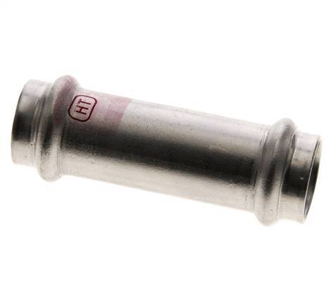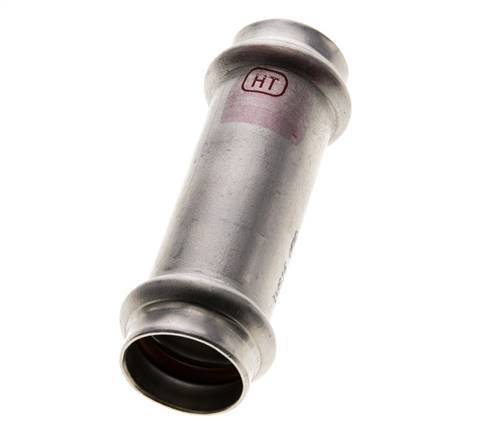 This is a press fitting with long sleeve made from stainless steel 1.4404. The fitting has two female press ports. Connection 1 and 2 are designed for a tube with an outer diameter of 22 mm. The fitting has an FKM sealing ring. The maximum pressure is 40 bar (580 psi). The fitting is suitable for temperatures from -20 to 200 °C (-4 to 392 °F). Temporary, the max temperature can be +280 °C (536 °F). The fitting length is 84 mm.