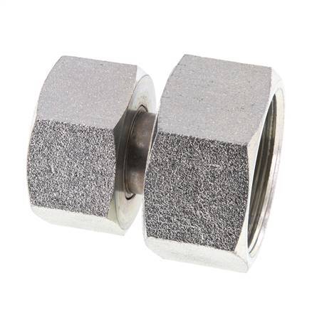 This zink plated steel straight screw in connection is designed with swivel tube connection port and a threaded connection. Connection 1 has a 30 mm swivel tube connection. Connection 2 has a 38 mm swivel tube connection. It has an o-ring and sealing cone for sealing. The seal material is NBR. The maximum pressure is 315 bar (4568 psi). The fitting is suitable for temperatures from -35 to 100 °C (-31 to 212 °F). It is made in accordance with DIN EN ISO 8434-1 (DIN 2353).