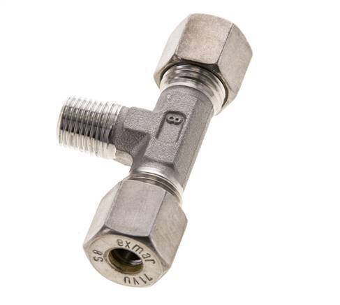 8S & R1/4'' Stainless Steel T-Shape Tee Compression Fitting with Male Threads 500 bar ISO 8434-1