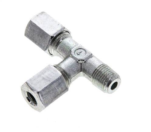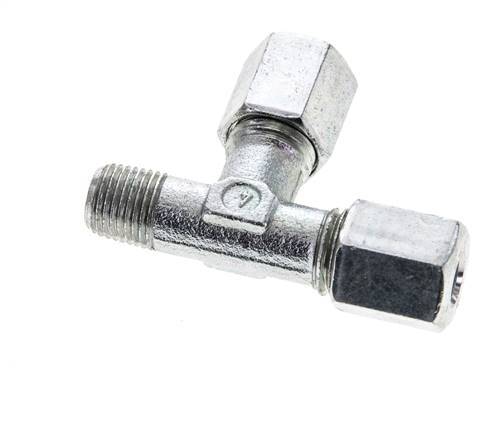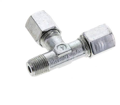 6L & M10x1 (con) Zink Plated Steel Right Angle Tee Cutting Fitting with Male Threads 315 bar ISO 8434-1