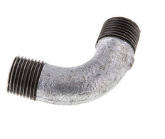 This 90-degree elbow pipe with male threads is used to connect two female threaded pipes or components. It is used in low-pressure applications up to 25 bar (351.25 psi). It is made of malleable cast iron and has a zinc coating for corrosion protection. Due to the large radius on the elbow, there is minimal pressure loss. It is suitable for steam, water, and air.