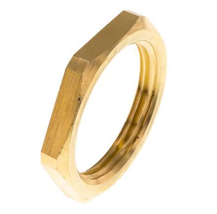 This lock nut is made of brass and has G threads. A locking nut resists loosening from vibrations and torque.