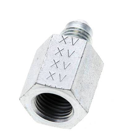 This is a JIC reducing nipple with G and UNF threads. Zinc-coated steel fittings provide some corrosion resistance, but are not meant for corrosive environments. The maximum operating pressure is 310 bar (4355.5 psi).