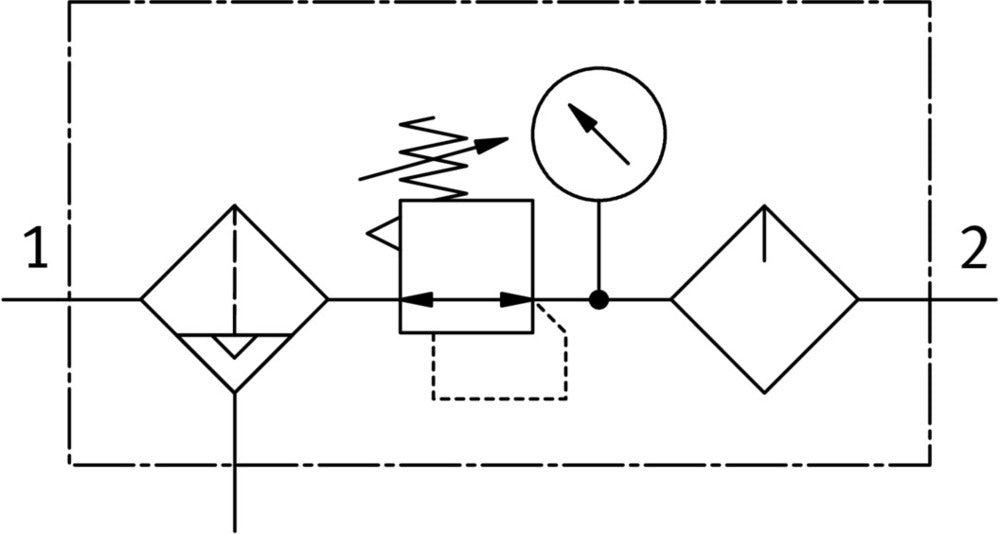 This air preparation unit combines a filter regulator with pressure gauge and a proportional standard oil mist lubricator. It features a G1/2 pneumatic connection and a standard nominal flow rate of 2600 l/min. The unit offers pressure regulation from 0.5 to 12 bar and includes a 40 µm filter for effective contaminant removal. Designed for industrial pneumatic systems, this compact unit ensures clean, regulated, and properly lubricated air supply, enhancing the performance and longevity of downstream pneumatic equipment.