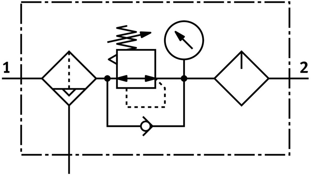 This air preparation combination unit offers efficient compressed air treatment for industrial applications. With a G1/2 pneumatic connection and a standard nominal flow rate of 3700 l/min, it provides robust performance. The unit features a pressure regulation range of 0.5 - 12 bar and a filtration grade of 40 µm, ensuring clean and properly pressurized air supply. Its compact 62 mm width design integrates a filter regulator with pressure gauge and proportional standard oil mist lubricator, making it suitable for various pneumatic systems requiring reliable air preparation.