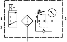 This air preparation combination unit offers efficient compressed air management for industrial applications. With a G1/2 pneumatic connection and a standard nominal flow rate of 5100 l/min, it provides robust performance for demanding systems. The unit features a pressure regulation range of 0.5 - 12 bar and a 40 µm grade of filtration, ensuring precise control and clean air output. Its compact 62 mm width design integrates a shut-off valve, filter regulator, and pressure gauge, making it a comprehensive solution for compressed air preparation in various technical environments.