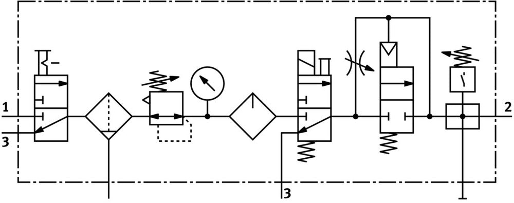 This air preparation unit combines essential pneumatic components in a compact package, offering efficient air treatment for industrial applications. With a G1/2 pneumatic connection and a standard nominal flow rate of 1220 l/min, it provides robust performance for various systems. The unit features a pressure regulation range of 2.5 - 12 bar and a 40 µm grade of filtration, ensuring clean and properly conditioned air supply. This integrated solution streamlines installation and maintenance, making it an ideal choice for technical buyers seeking reliable pneumatic system performance.