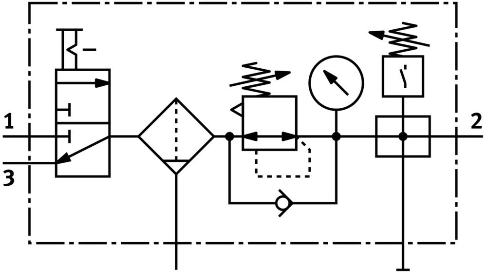 The air preparation combination unit offers efficient compressed air management in a compact 40 mm width. With a G1/4 pneumatic connection and 1300 l/min standard nominal flow rate, it provides robust performance for various applications. The unit features a pressure regulation range of 0.5 - 12 bar and a 40 µm grade of filtration, ensuring precise control and contaminant removal. This combination unit integrates essential components for reliable air preparation, making it suitable for technical environments requiring high-quality compressed air solutions.