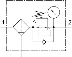 This compressed air filter regulator combines pressure regulation and filtration in a compact 40 mm width unit. It offers a standard nominal flow rate of 1500 l/min and a pressure regulation range of 0.5 - 12 bar. The G1/4 pneumatic connection and 40 µm filtration grade ensure efficient particle and condensate separation. The directly actuated diaphragm regulator provides precise pressure control with minimal hysteresis and primary pressure compensation. The lockable rotary knob allows for secure pressure settings, while the integrated return flow option enables exhausting from output to input.