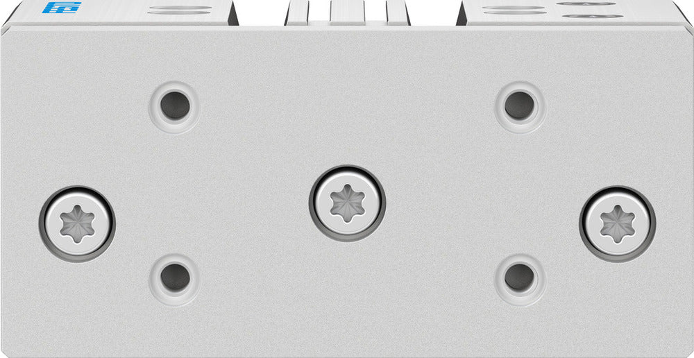 The DFM guided actuator combines a recirculating ball bearing guide with a double-acting pneumatic cylinder in a single compact unit. With a 63 mm piston diameter and 25 mm stroke, it delivers 1870 N of force at 6 bar pressure. The design offers high resistance to torques and lateral forces, making it suitable for precise clamping, lifting, and stopping applications. Elastic cushioning rings at both ends provide smooth operation, while the integrated position sensing capability allows for easy integration with control systems.