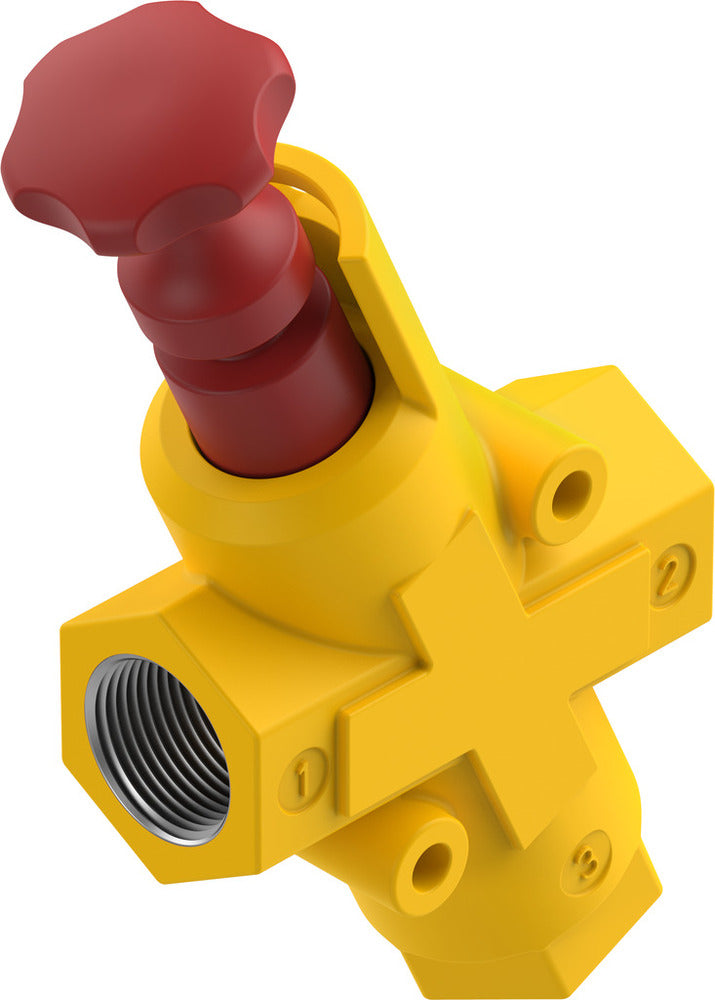 This manual on/off valve provides efficient control of compressed air systems with a standard nominal flow rate of 6200 l/min. Operating within a pressure range of 1 to 10 bar, it features a G1/2 pneumatic connection for easy integration. The valve allows for shutting off the compressed air supply while simultaneously exhausting downstream systems. Designed to meet OSHA 29 CFR 147 standards, it can be securely locked in the closed position for added safety. Installation options include screwing into piping or wall mounting using through-holes.