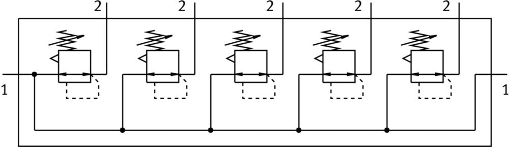 This pressure regulator manifold offers precise control for pneumatic systems with a G1/2 connection. It features a standard nominal flow rate of 3200 l/min and a pressure regulation range of 0.5 to 12 bar, with a maximum pressure hysteresis of 0.2 bar. The directly actuated diaphragm regulator allows for independent adjustment of pressure ranges, while the detent on the rotary knob and push-in adjustment lock ensure secure settings. This manifold is designed for efficient through air supply, providing reliable performance for technical applications.