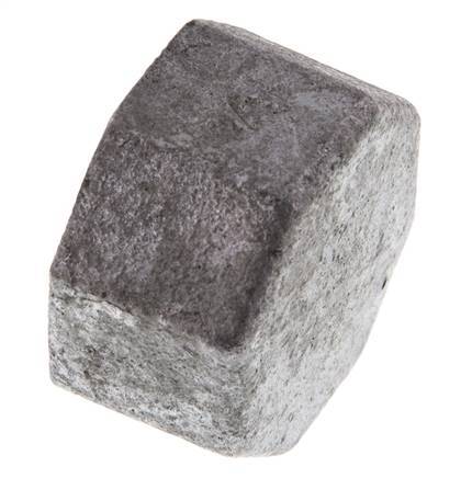 This end cap is designed with a female threaded connection. Connection 1 has Rp 1 1/4 inch threads. It is an end cap, so it has no output port. It is made out of cast iron (malleable) and is galvanic/electrolytic zinc plated for surface protection. At 20 °C (68 °F), it can handle a maximum pressure of 25 bar (363 psi).