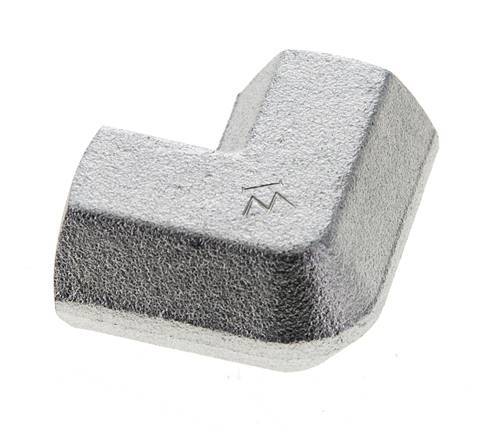 This elbow is designed with female threads at an angle. Connection 1 has female NPT 3/8 inch threads. Connection 2 has female NPT 3/8 inch threads. It is an elbow fitting. It is made out of steel and is galvanic/electrolytic zinc plated for surface protection. At 20 °C (68 °F), it can handle a maximum pressure of 210 bar (3046 psi). The input and the output are at a 90° angle.