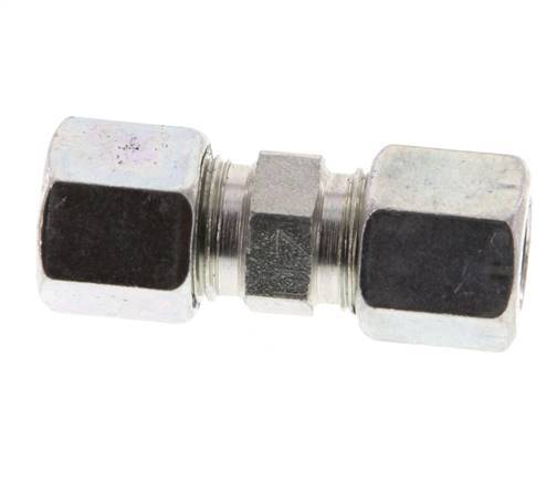 This straight screw connection is designed with two cutting ring connection points. Connection 1 is a 8 mm cutting ring. Connection 2 is a 8 mm cutting ring. It is a straight fitting. It is made out of steel and is galvanic/electrolytic zinc plated for surface protection. It is suitable for media within a temperature range of -40 °C to 120 °C (-40 °F to 248 °F). At 20 °C (68 °F), it can handle a maximum pressure of 100 bar (1450 psi). According to the DIN 2353, it has an LL (very light) load class. It is made in accordance with the DIN EN ISO 8434-1 (DIN 2353).