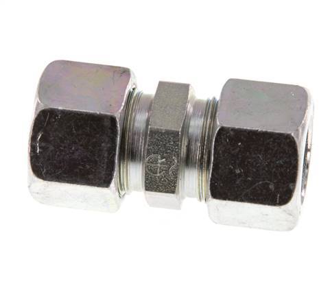 This straight screw connection is designed with two cutting ring connection points. Connection 1 is a 12 mm cutting ring. Connection 2 is a 12 mm cutting ring. It is a straight fitting. It is made out of steel and is galvanic/electrolytic zinc plated for surface protection. It is suitable for media within a temperature range of -40 °C to 120 °C (-40 °F to 248 °F). At 20 °C (68 °F), it can handle a maximum pressure of 100 bar (1450 psi). According to the DIN 2353, it has an LL (very light) load class. It is made in accordance with the DIN EN ISO 8434-1 (DIN 2353).