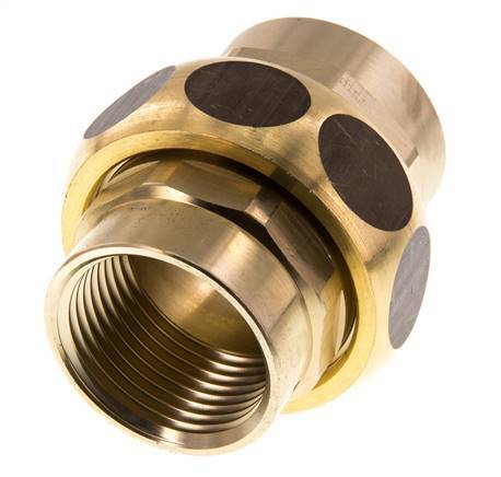 This screw connection is designed with female to female threads. Connection 1 has Rp 1 inch threads. Connection 2 has Rp 1 inch threads. It is a straight fitting. It is made out of brass. At 20 °C (68 °F), it can handle a maximum pressure of 16 bar (232 psi). They have a 3-part design.