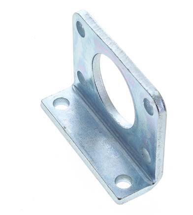 This foot flange is designed for fixed mounting of Round pneumatic cylinders with a 50 mm mm diameter. They allow for easy assembly and disassembly. They create a rigid mounting, which means the cylinder must be properly aligned to the load. They must be used on the front and back end of the cylinder (2 needed). After securing one to the cylinder, it has a 90° bend to then secure it to a mounting surface parallel to the cylinder`s rod.