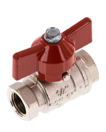 2-way compact ball valve with G 1/4 inch ports and a butterfly handle for on/off flow control. The valve bore is 10 mm and the maximum pressure is 50 bar or 725 psi. Suitable for water, neutral, gaseous and non-aggressive, liquid media, mineral oils and compressed air. Also suitable for vacuum (max. -0.9 bar or -13 psi). Suitable for temperatures from -20 to 150 °C (-4 to 302 °F). Nickel-plated brass housing, hard chrome plated brass ball and PTFE/NBR sealings.